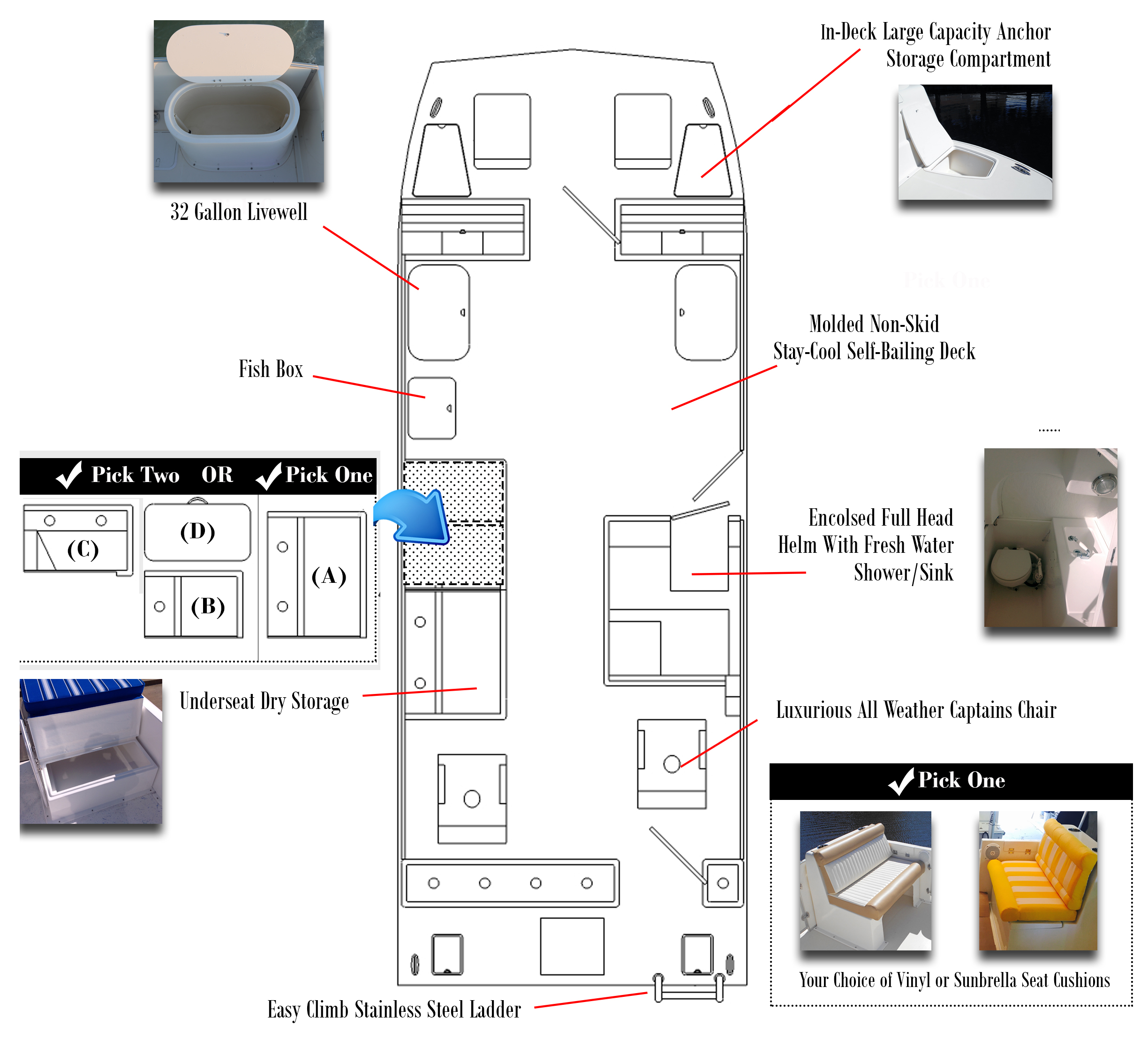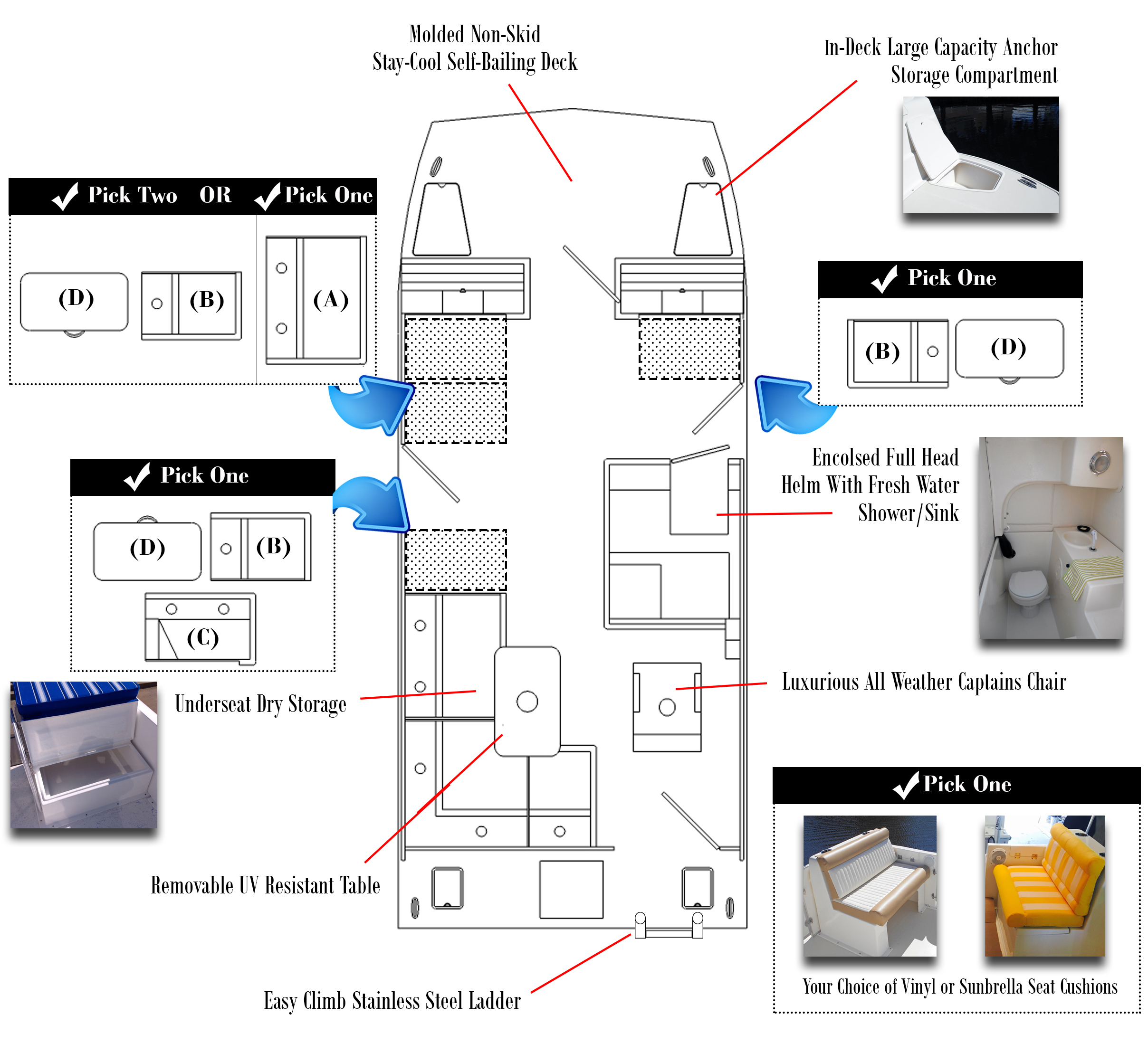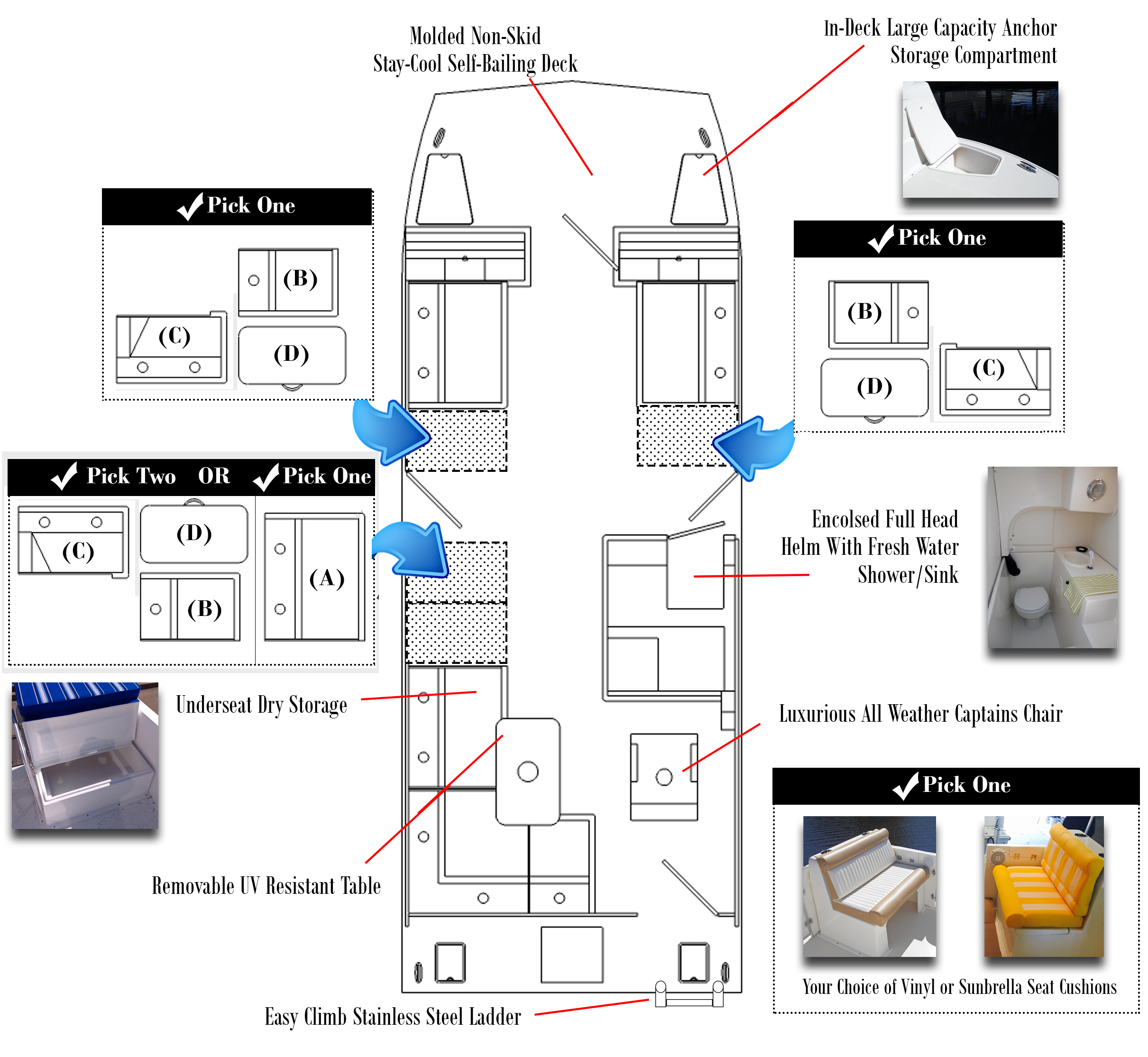 Build your pontoon layout by choosing from the options below to complete your personal design.